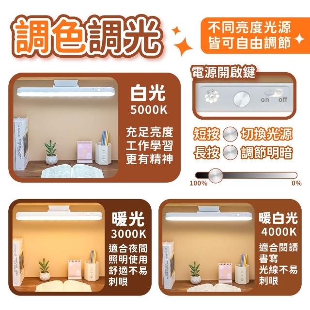 小麥購物LED磁吸護眼檯燈 LED磁吸閱讀燈 三色調光 磁吸宿舍燈 燈條 護眼檯燈 磁吸燈 小夜燈 壁燈 桌燈 宿舍燈 燈