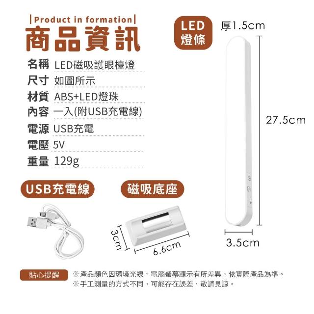 小麥購物LED磁吸護眼檯燈 LED磁吸閱讀燈 三色調光 磁吸宿舍燈 燈條 護眼檯燈 磁吸燈 小夜燈 壁燈 桌燈 宿舍燈 燈