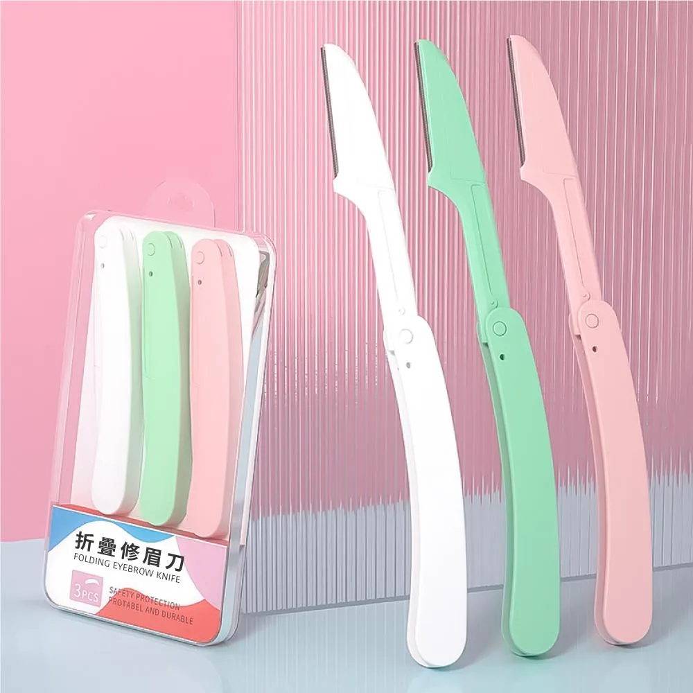 小麥購物折疊修眉刀 3入組 修眉刀 刮眉刀 防刮傷 眉刀 刮毛刀 折疊刮眉刀 折疊 微距 安全型折疊刮眉刀 美容工具 新手可用