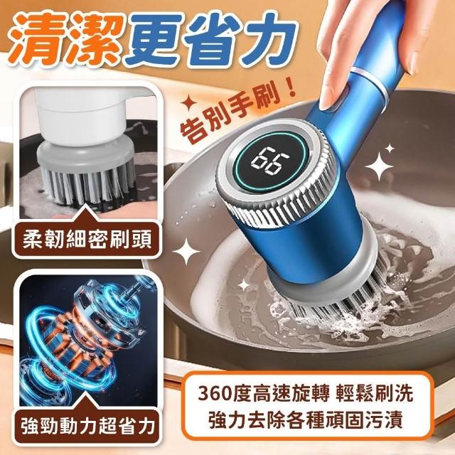 小麥購物電動清潔刷 附5刷頭 (電動刷 洗碗清潔刷 充電電動刷)