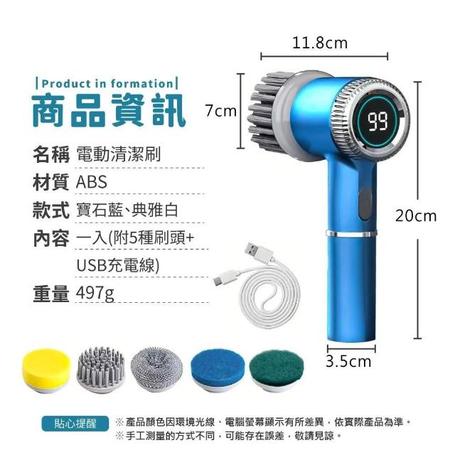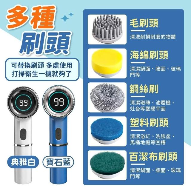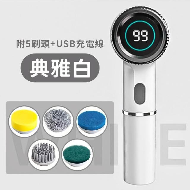 小麥購物電動清潔刷 附5刷頭 (電動刷 洗碗清潔刷 充電電動刷)