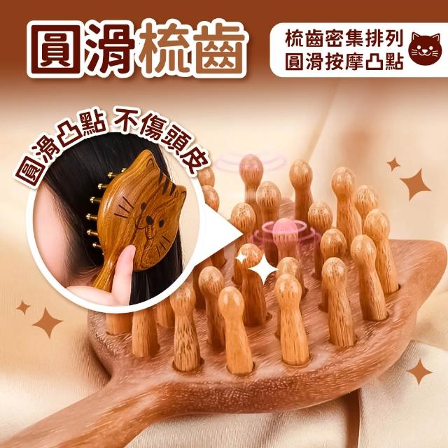 小麥購物檀木貓咪按摩梳 檀木按摩梳 檀木梳 貓咪按摩梳 卡通按摩梳 按摩梳 頭皮按摩 經絡按摩 保健梳 天然檀木 高顏值