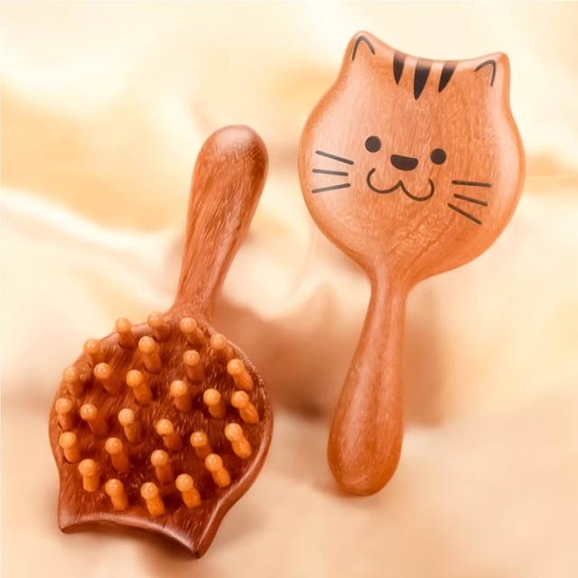 小麥購物檀木貓咪按摩梳 檀木按摩梳 檀木梳 貓咪按摩梳 卡通按摩梳 按摩梳 頭皮按摩 經絡按摩 保健梳 天然檀木 高顏值