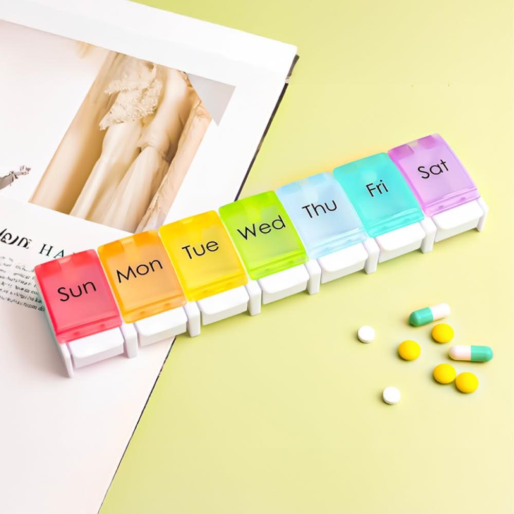 小麥購物按壓彈蓋式藥盒 一周藥盒 七彩藥盒 便攜式藥盒 藥盒 密封藥盒 隨身藥盒 分裝藥盒 防潮藥盒 收納盒
