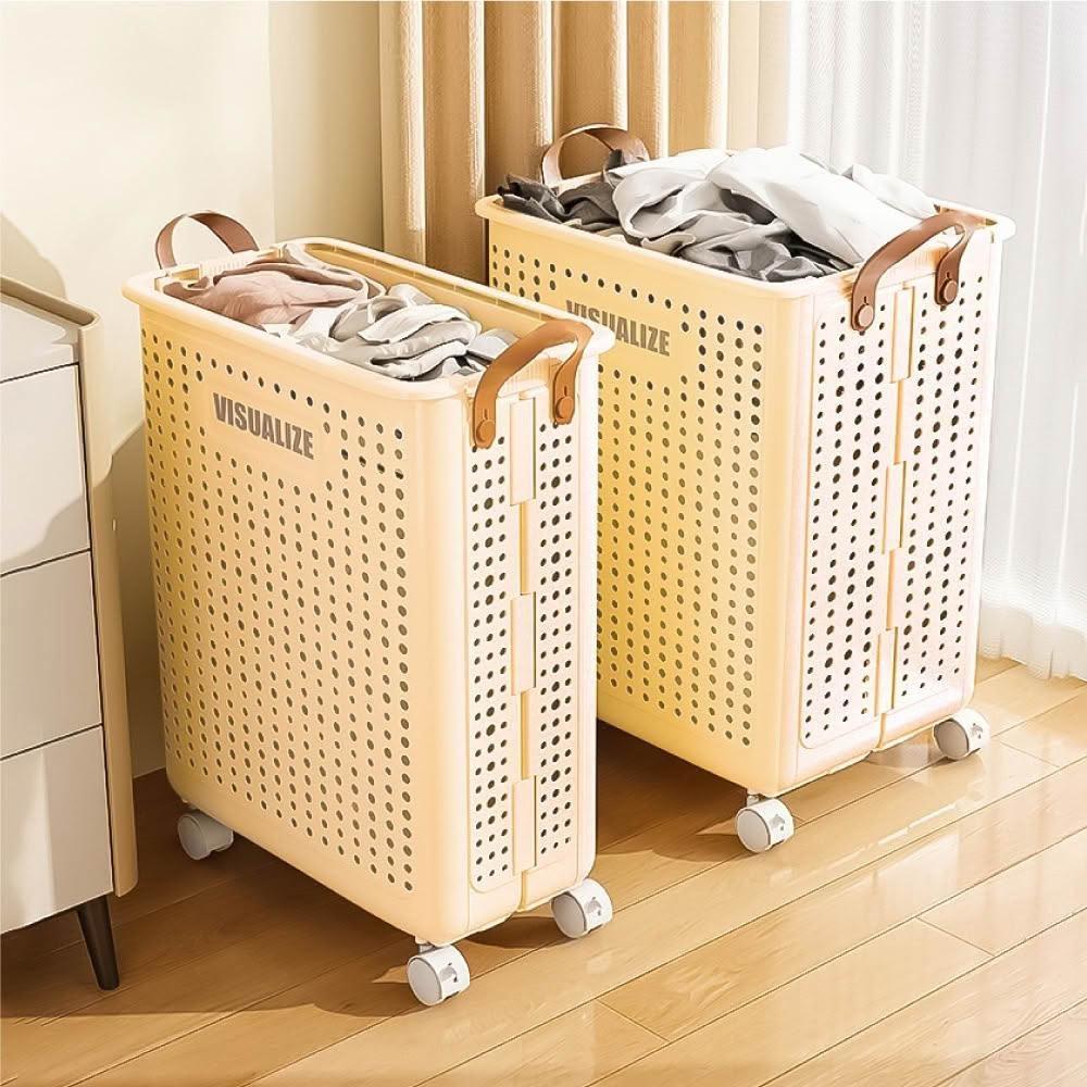 小麥購物移動式摺疊洗衣籃 附輪子 折疊洗衣籃 洗衣筐 洗衣籃 髒衣籃 手提洗衣籃 縫隙收納籃 縫隙置物推車 衣物收納