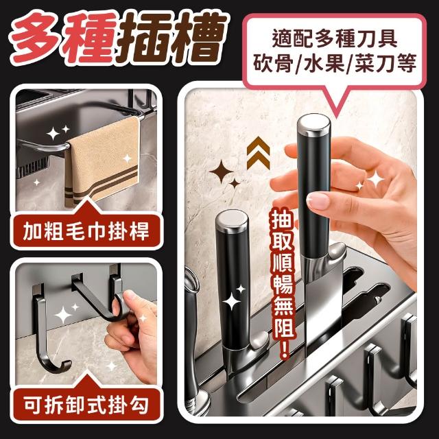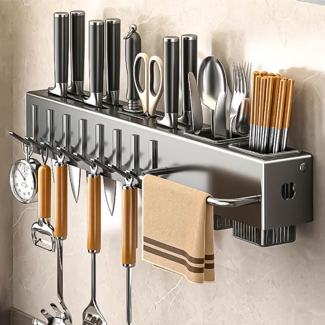 小麥購物廚房壁掛刀架 免打孔 廚房收納架 壁掛式收納架 刀架 菜刀架 刀具架 壁掛式刀架 筷子筒 瀝水刀架 廚房收納
