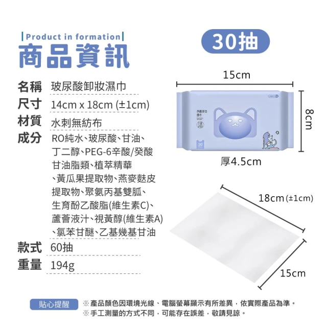 小麥購物玻尿酸卸妝濕巾 30抽 60抽 卸妝濕紙巾 卸妝 卸妝巾 卸妝棉 卸妝紙巾 濕巾 擦臉巾 卸妝用品 彩妝