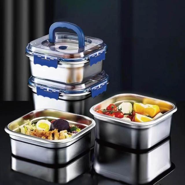 小麥購物加厚不鏽鋼保鮮盒 不銹鋼保鮮盒 密封 手提 冰箱收納盒 保鮮 大容量 耐高溫 保鮮盒