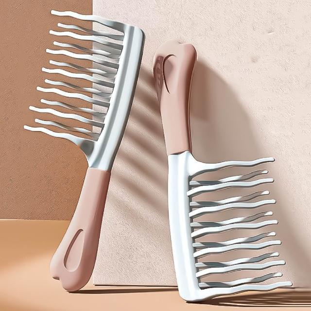 小麥購物雙排捲髮梳 寬齒梳 波浪齒 捲髮專用 大齒梳 髮根蓬鬆梳 造型梳 理髮梳 美髮梳 梳子 順髮 防靜電