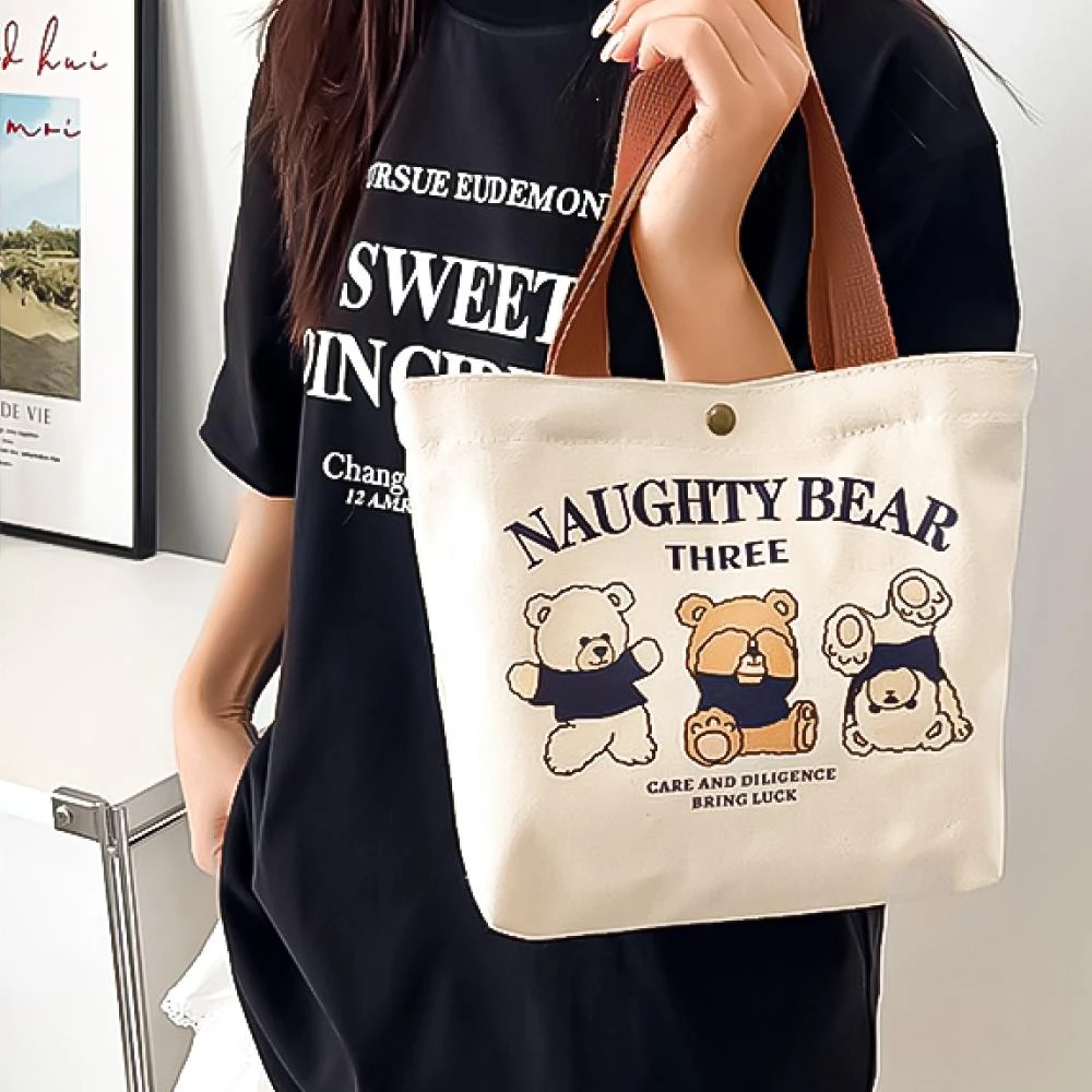 小麥購物小熊帆布袋 手提包 手提袋 小熊手提袋 帆布袋 購物袋 帆布包 包包 午餐袋 便當袋 環保提袋 袋子