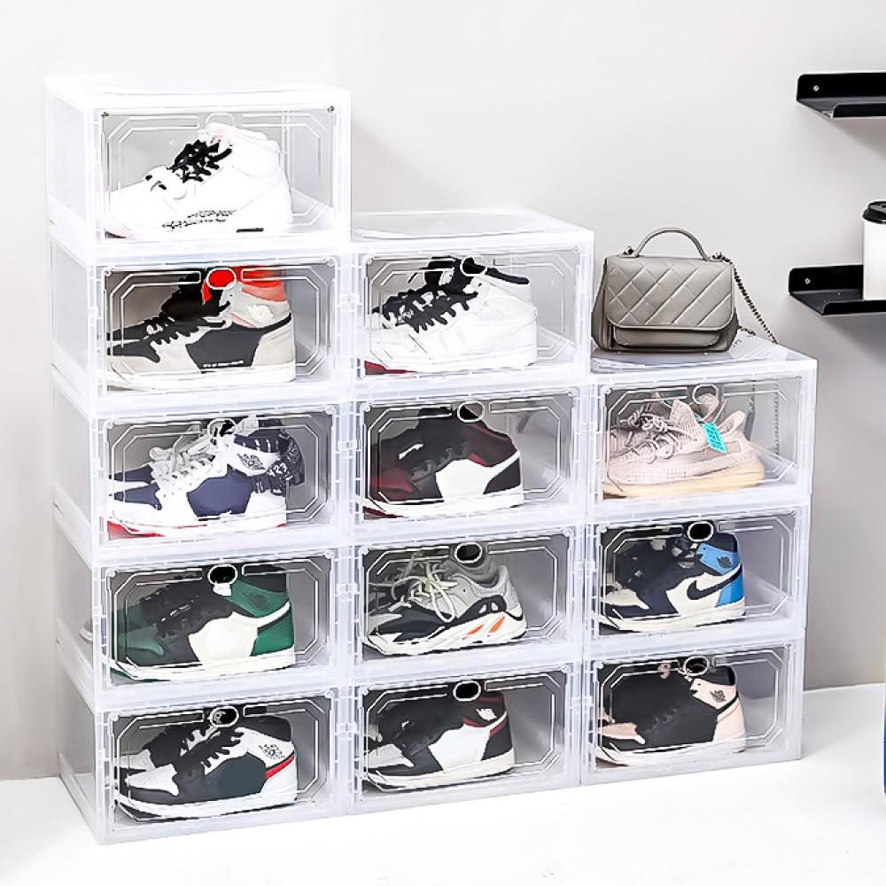 小麥購物折疊磁吸鞋盒 透明鞋盒 加厚鞋盒 折疊鞋盒 鞋櫃 鞋架 展示盒 置物架 球鞋收納 公仔盒 收納