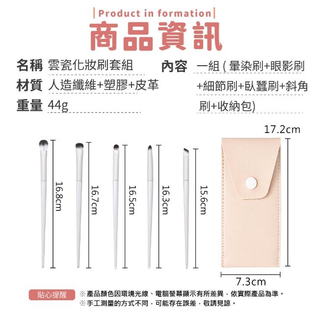 小麥購物雲瓷化妝刷套組 5支 眼部刷 眼影刷 眼線刷 臥蠶刷 化妝刷 斜角刷 暈染刷 刷具 眼妝 美妝