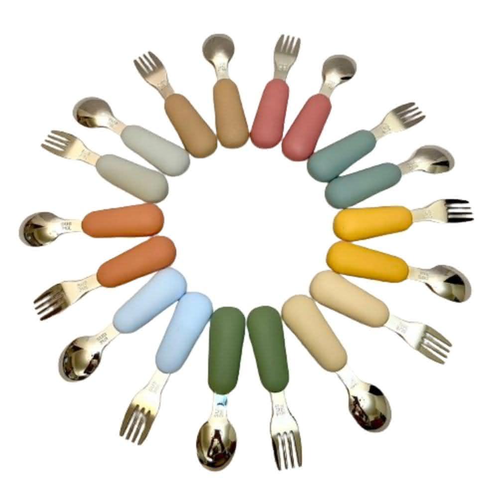 316L不鏽鋼叉勺組(兒童餐具 短柄湯匙 短柄叉子 學習餐具 短柄叉勺 學習叉勺 寶寶勺叉 湯匙 叉子)
