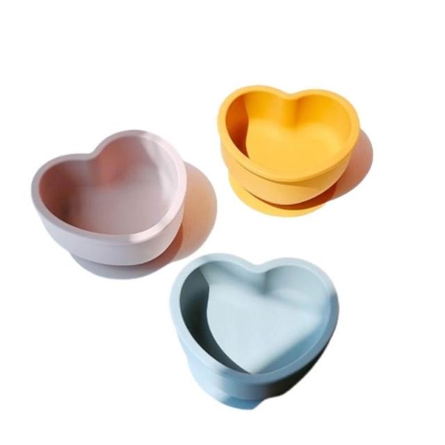 兒童吸盤愛心碗(兒童餐具 矽膠餐具 耐熱吸盤碗 吸盤餐盤 寶寶碗 學習碗)