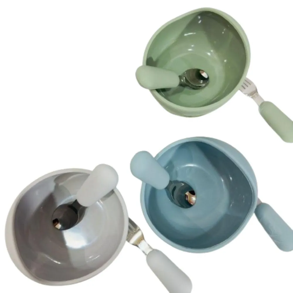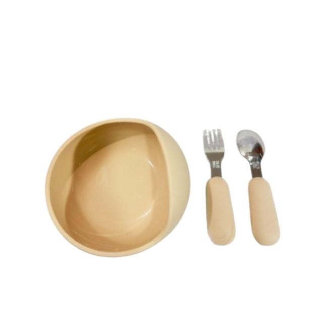 兒童餐具蝸牛碗3件組(矽膠蝸牛碗 吸盤碗 316L不鏽鋼叉勺 副食品餐具 寶寶餐具 美國台灣FDA認證)
