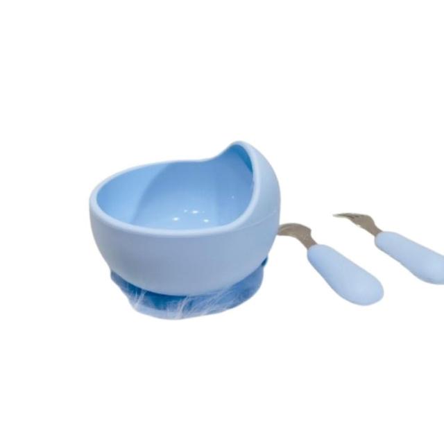 兒童餐具蝸牛碗3件組(矽膠蝸牛碗 吸盤碗 316L不鏽鋼叉勺 副食品餐具 寶寶餐具 美國台灣FDA認證)