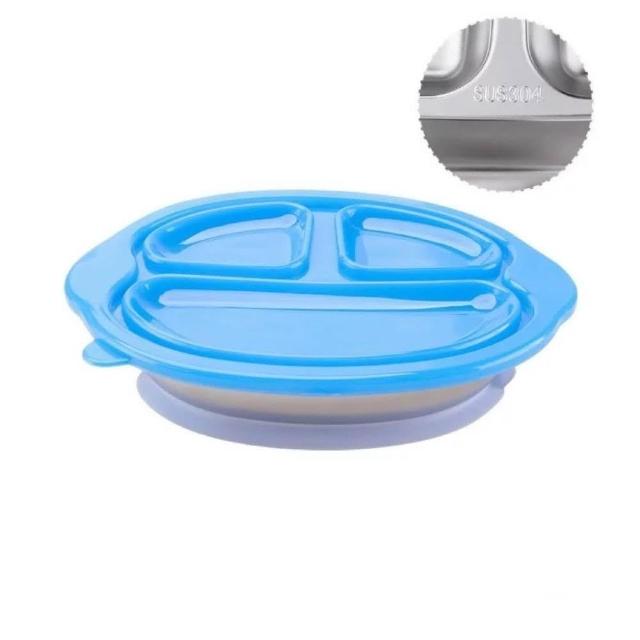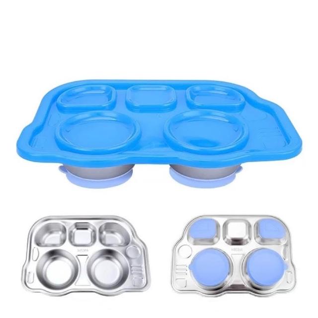 不鏽鋼吸盤餐盤(304不鏽鋼 吸盤餐盤 可愛兒童餐具 寶寶卡通餐盤 分隔餐盤 動物造型 兒童餐盤 汽車餐盤)