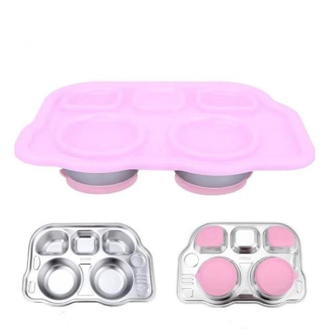 不鏽鋼吸盤餐盤(304不鏽鋼 吸盤餐盤 可愛兒童餐具 寶寶卡通餐盤 分隔餐盤 動物造型 兒童餐盤 汽車餐盤)