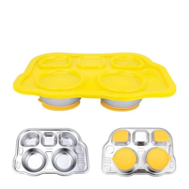不鏽鋼吸盤餐盤(304不鏽鋼 吸盤餐盤 可愛兒童餐具 寶寶卡通餐盤 分隔餐盤 動物造型 兒童餐盤 汽車餐盤)