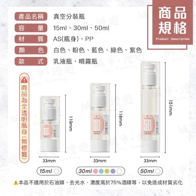 City Roaming 城市漫遊真空分裝瓶 旅行分裝瓶 真空瓶 乳液瓶 噴霧瓶 分裝瓶 分裝罐 真空乳液瓶 真空噴霧瓶