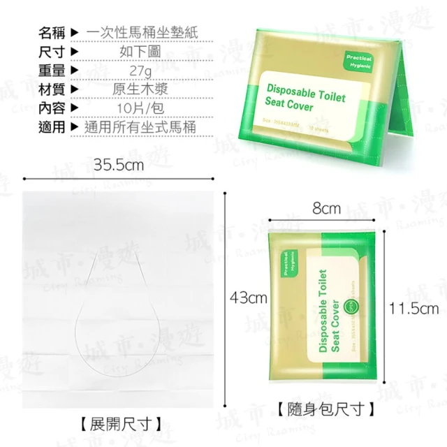 City Roaming 城市漫遊馬桶坐墊紙(10片裝) 拋棄式 可溶水 水溶性馬桶坐墊紙 馬桶墊紙 馬桶紙 馬桶坐墊紙 拋棄式馬桶坐墊紙
