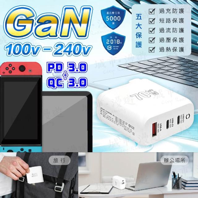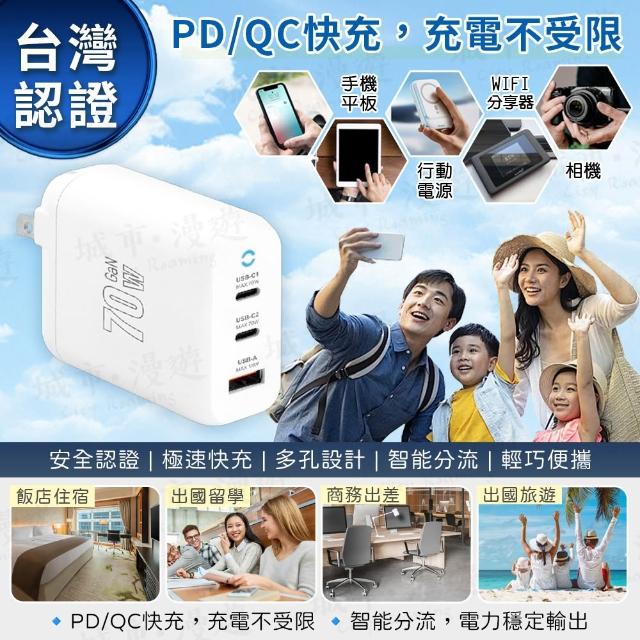 City Roaming 城市漫遊USB極速充電器 70W 氮化鎵 GaN 充電頭 多孔type c 快充 QC+PD