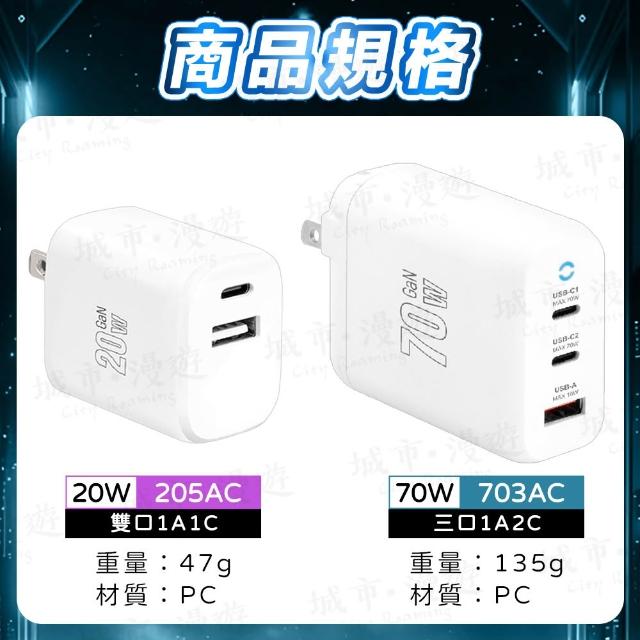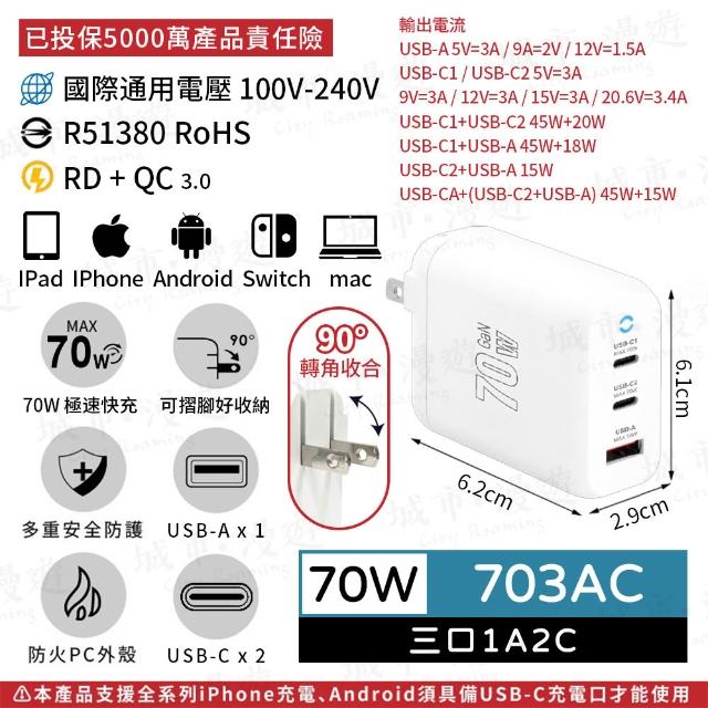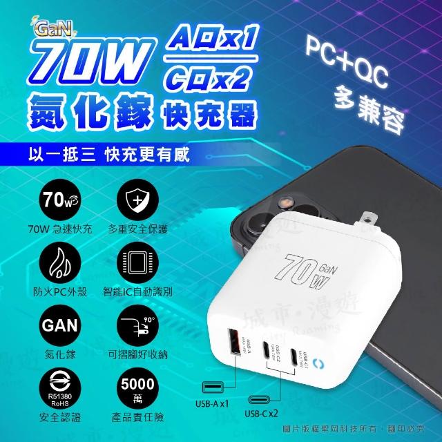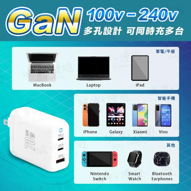 City Roaming 城市漫遊USB極速充電器 70W 氮化鎵 GaN 充電頭 多孔type c 快充 QC+PD