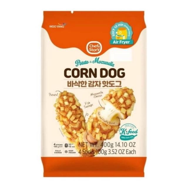 韓國 WOO YANG 馬鈴薯脆皮魚香熱狗(4入)400g (冷凍商品,勿與常溫商品訂購)只能冷凍宅配