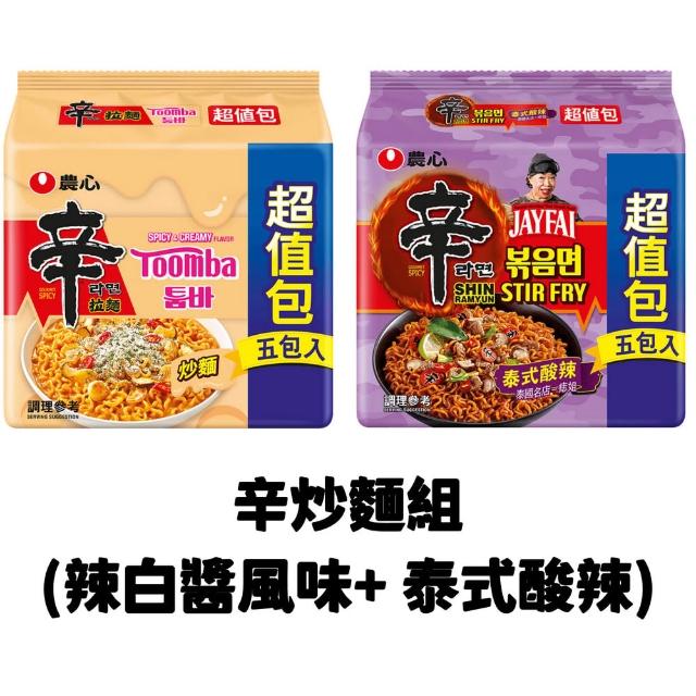 農心泡麵農心 乾麵2袋組 辛炒麵(泰式酸辣) +辛拉麵(辣白醬) 台版 5包入各一袋