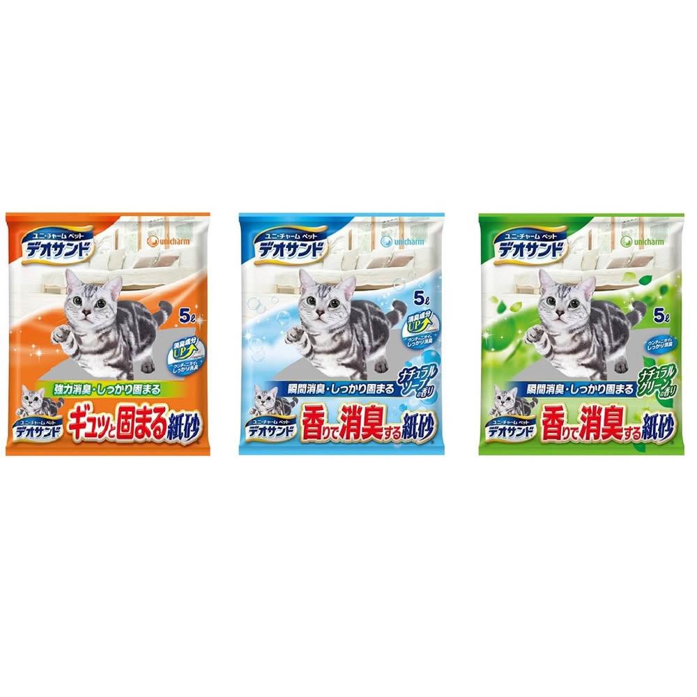 Unicharm Pet 消臭大師日本 Unicharm 嬌聯 消臭大師瞬間消臭 紙砂 5L 森林香 沐浴香 無香 貓砂
