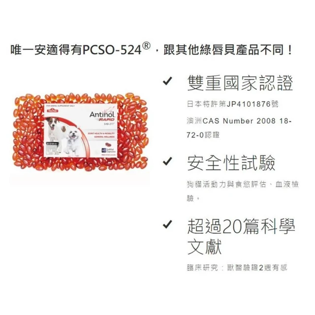 Antinol 安適得 原廠公司貨 酷版 防偽雷射標籤有保障 關節保養 犬貓用 60顆/盒 天然關節營養品