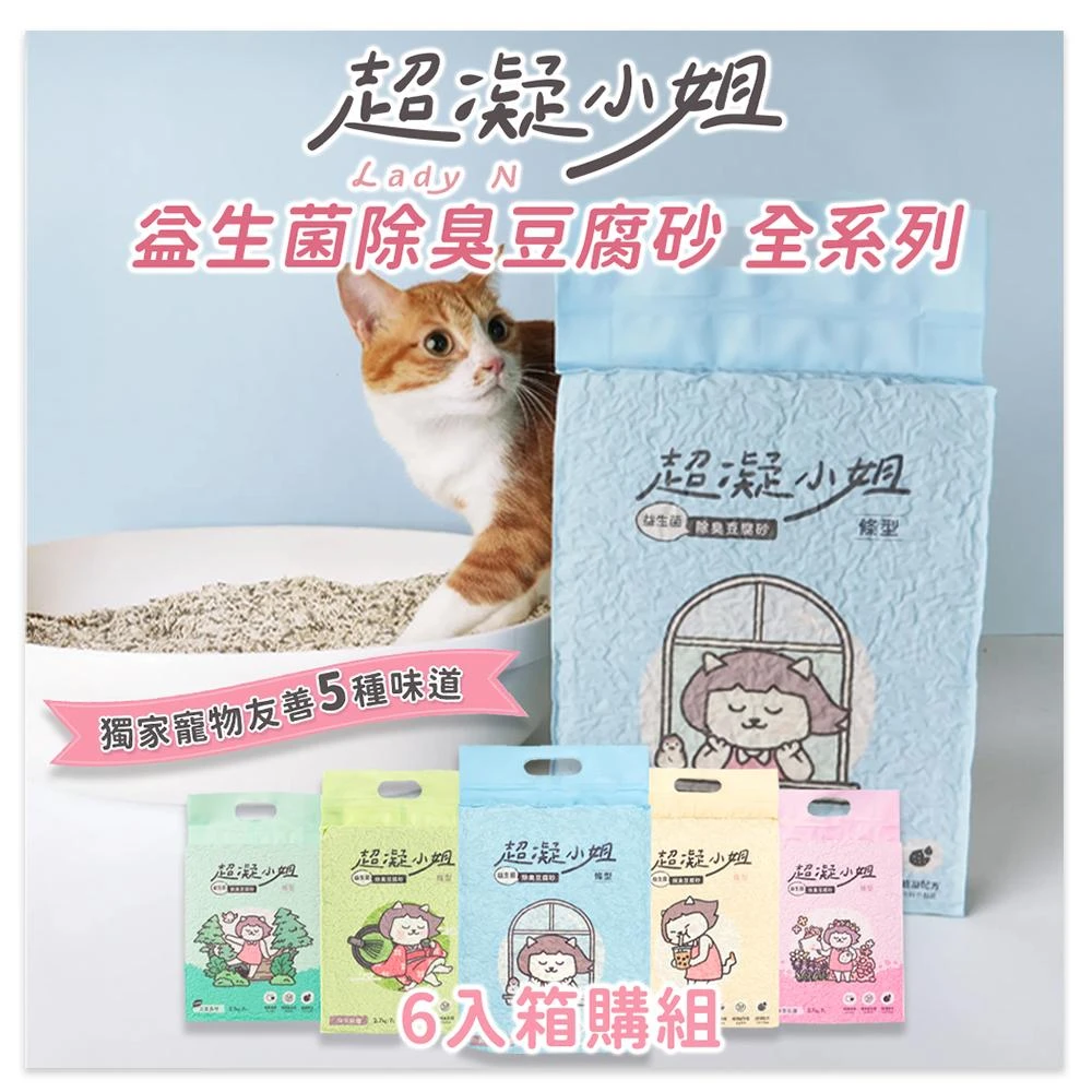 超凝小姐[7L x 6入組+免運] 超凝小姐 Lady N 益生菌除臭豆腐砂 貓砂 可沖馬桶