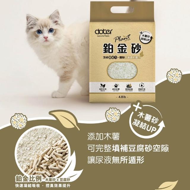 doter 寵愛物語Plant 輕植系 貓用 鉑金砂 2.2KG 木薯 x 豆腐砂 低粉塵 凝結力 貓砂 單包組
