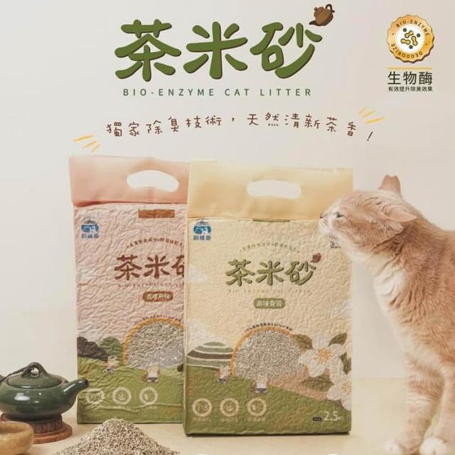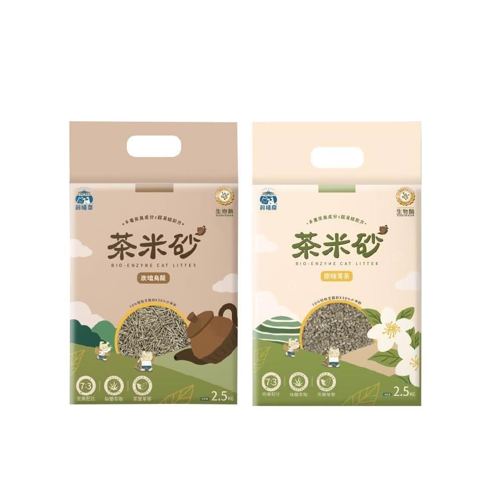 飼糧倉[6入/箱購組] 貓用 茶米砂系列 原味青茶 炭焙烏龍 2.5kg (長條 短粒 豆腐砂 貓砂)