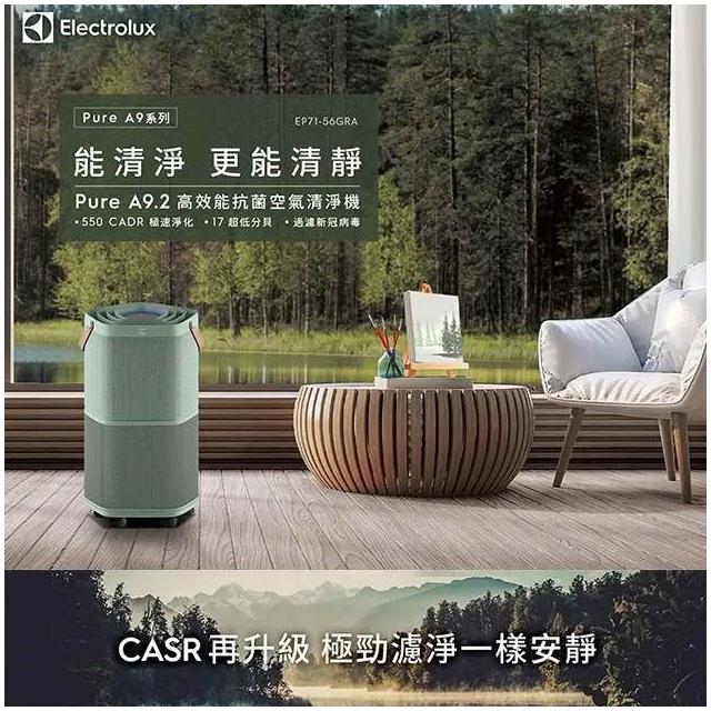 Electrolux 伊萊克斯高效能抗菌空氣清淨機 Pure A9.2系列 (寵物適用 22坪 三色任選 EP71-56系列)