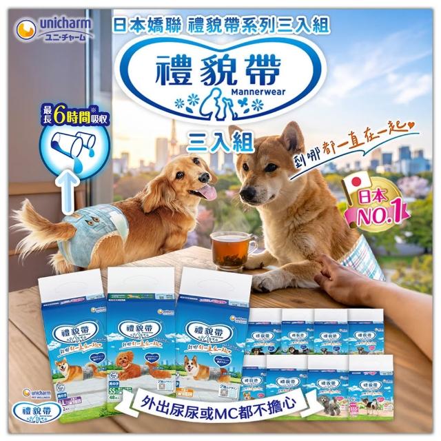 Unicharm Pet 禮貌帶[三包組] 嬌聯禮貌帶 消臭大師 男用 女用 公狗 母狗 拋棄式禮貌帶 (尿褲 狗尿布 犬用 3包組)