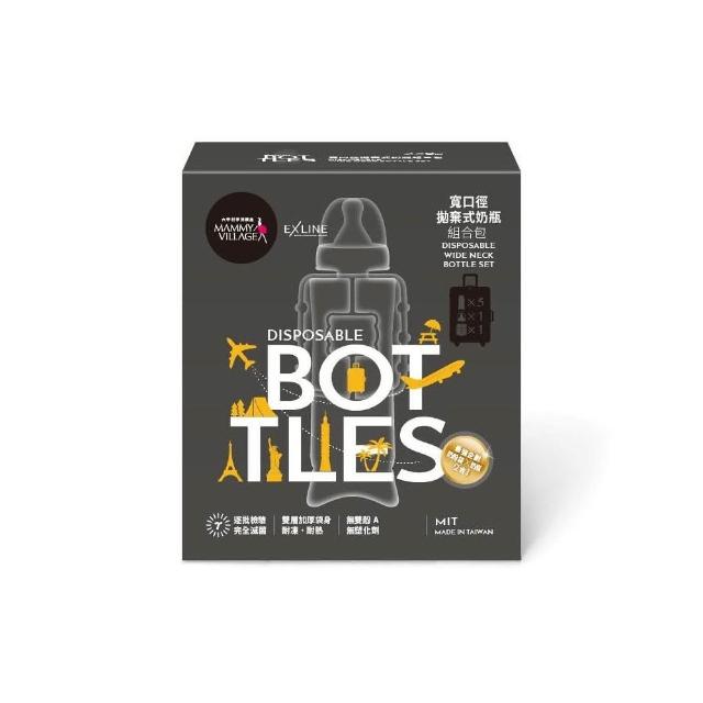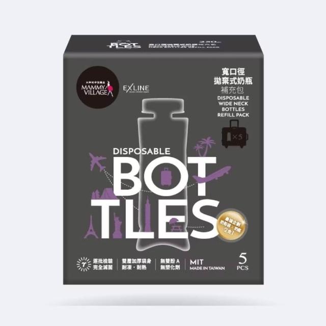 Mammy Village 六甲村寬口拋棄式奶瓶組合包250MLx5個+手握器X1+奶瓶蓋組X1 補充包