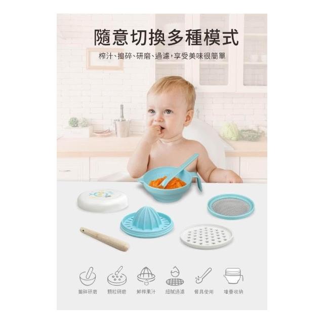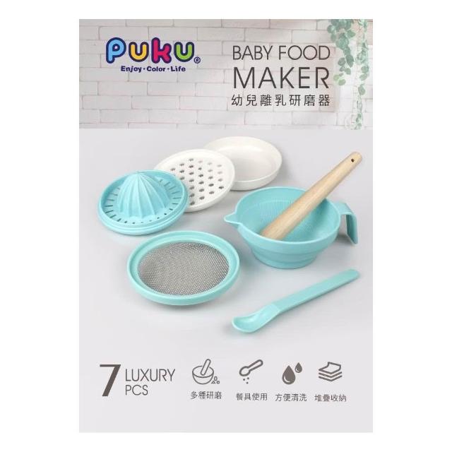 PUKU 藍色企鵝嬰幼兒副食品研磨器 (七件式 組合收納便利組) 台灣製 14101