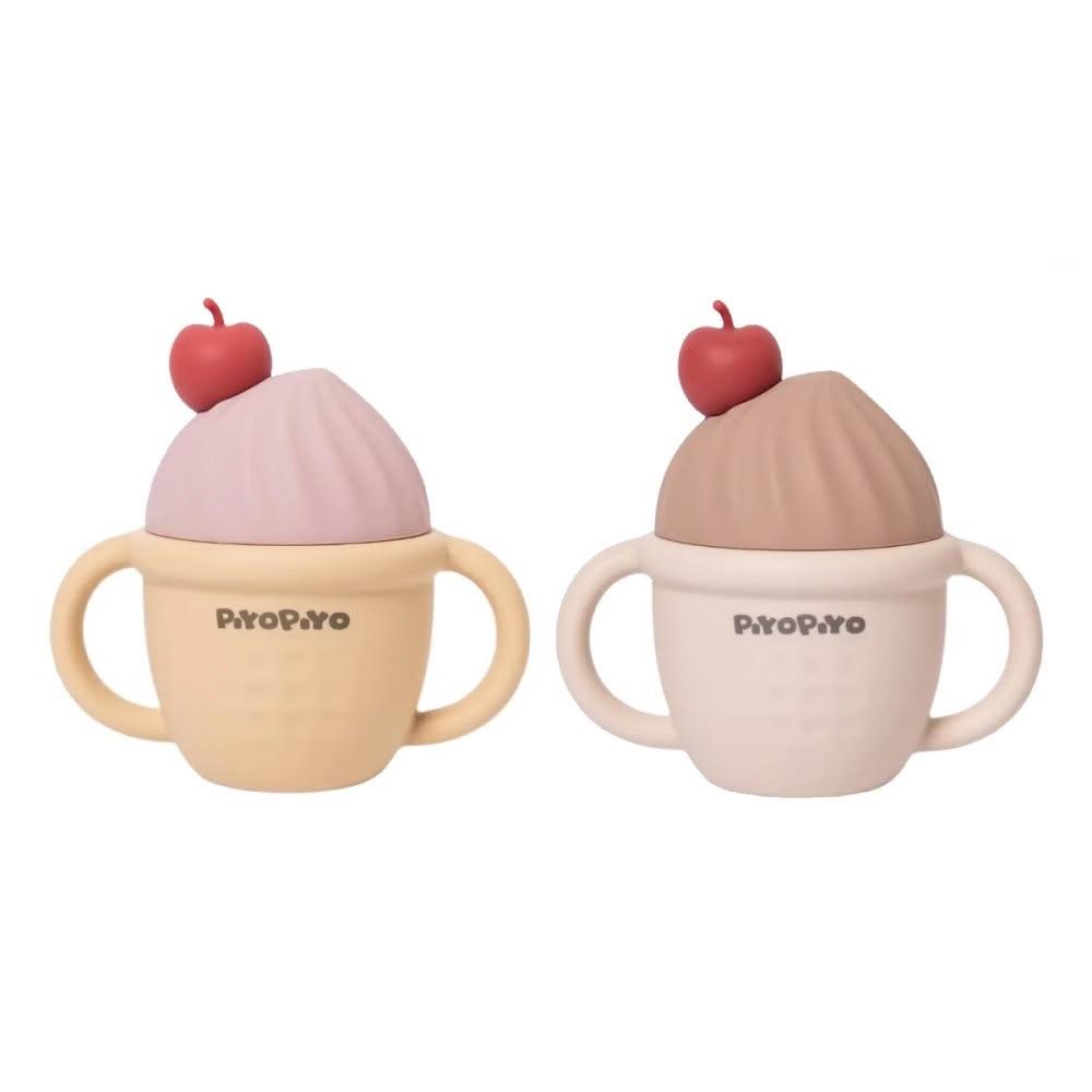 Piyo Piyo 黃色小鴨鉑金矽膠聖代甜筒吸管杯(嬰幼兒安全無毒學習杯 練習杯 喝水杯)