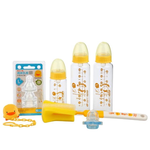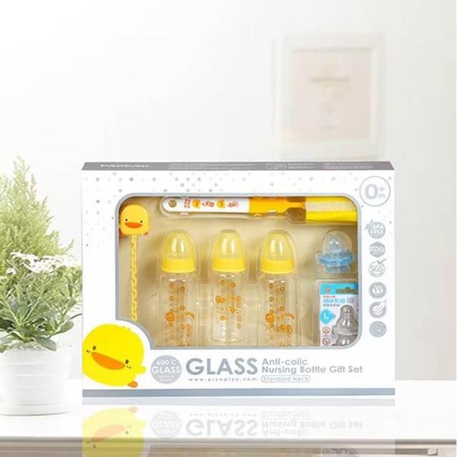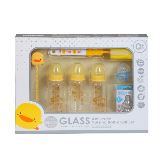 Piyo Piyo 黃色小鴨媽咪乳感晶鑽奶瓶禮盒(標準口徑) 附提袋 彌月禮盒 830581