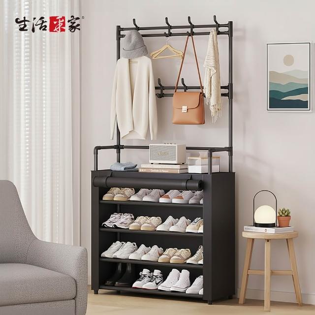 生活采家落地型一體組合衣帽鞋架含布套 5層80cm款 玄關鞋架 組合鞋櫃 掛勾鞋架 組合鞋櫃 簡易鞋架 衣物架 衣架