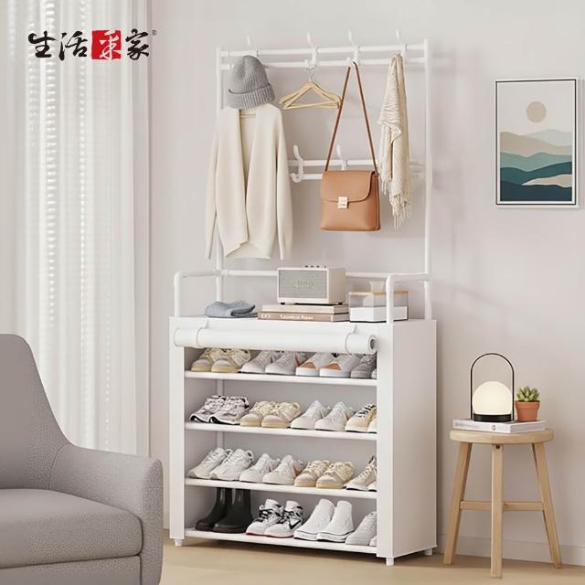 生活采家落地型一體組合衣帽鞋架含布套 5層80cm款 玄關鞋架 組合鞋櫃 掛勾鞋架 組合鞋櫃 簡易鞋架 衣物架 衣架