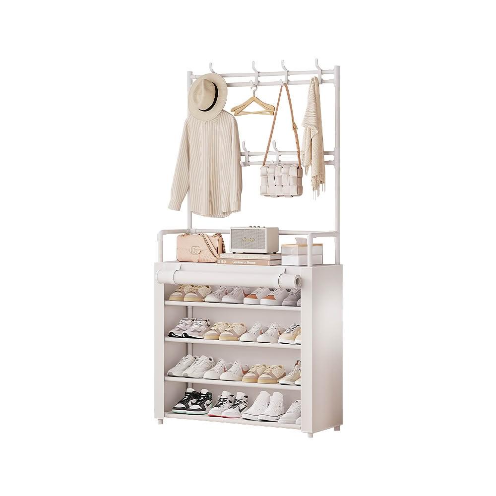 生活采家落地型一體組合衣帽鞋架含布套 5層80cm款 玄關鞋架 組合鞋櫃 掛勾鞋架 組合鞋櫃 簡易鞋架 衣物架 衣架