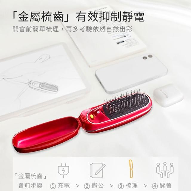 負離子音波磁氣摺疊美髮梳(USB充電式)造型梳 梳子 懶人直髮器 電子梳 離子梳 梳髮神器