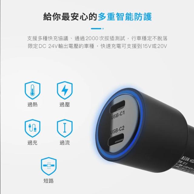 hoda雙孔 USB-C 車載PD快速充電器 車用充電 汽車充電 汽車車充 車充 車充快充 車用充電器 點煙器車充