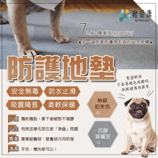 紐促康 專業級寵物防護地墊 犬貓防滑地墊7片 吸震隔音 可機洗 不殘膠 柔軟保暖 防水止滑