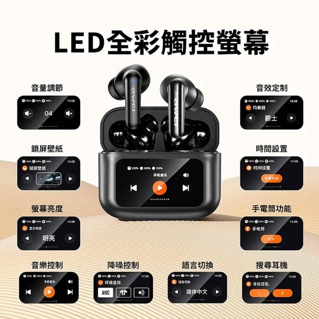AWEI 用維 T56 降噪 可觸控式 藍芽耳機 ANC觸控全彩藍牙耳機 耳機 智慧穿戴 耳機 耳機配件 音樂播放器