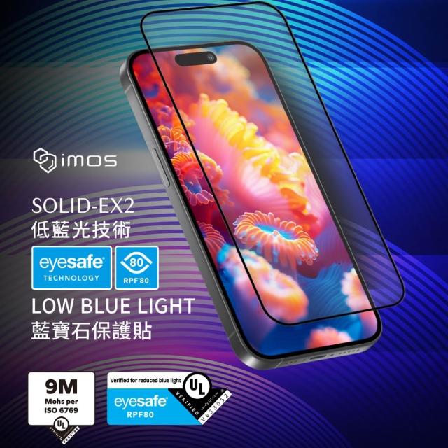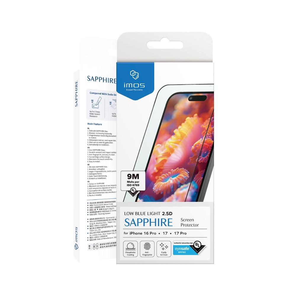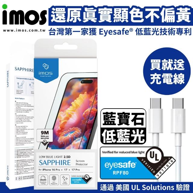 iMos贈充電線 imos 9M 藍寶石 低藍光 iPhone 17 Pro Max / Air / 16 Pro 螢幕保護貼