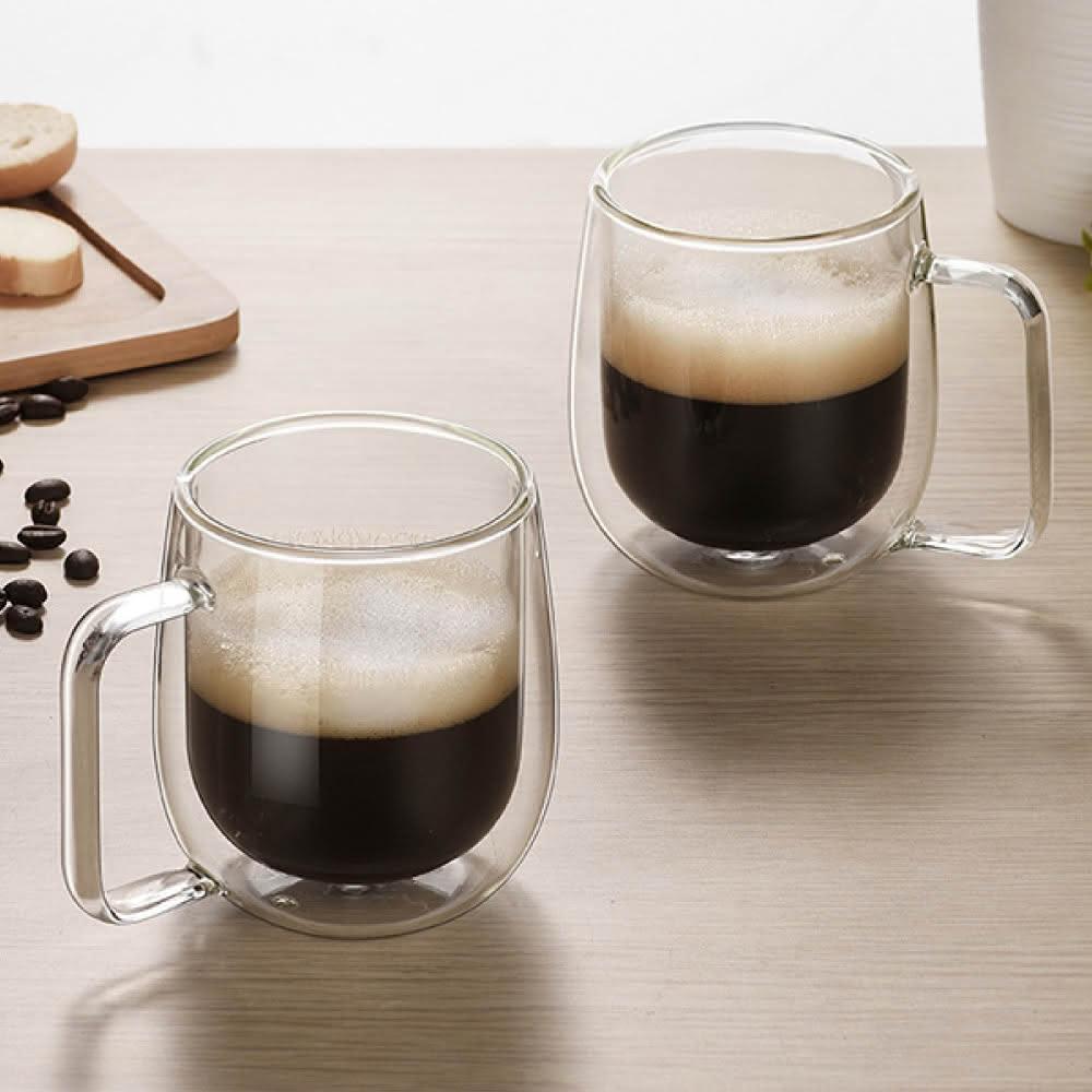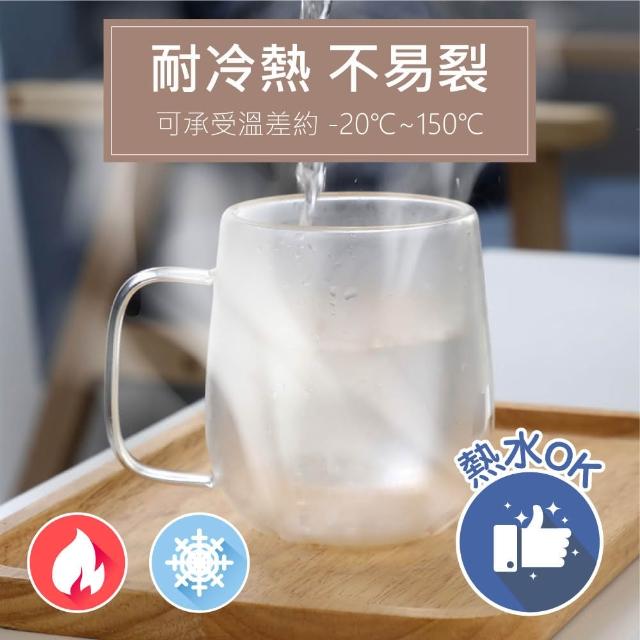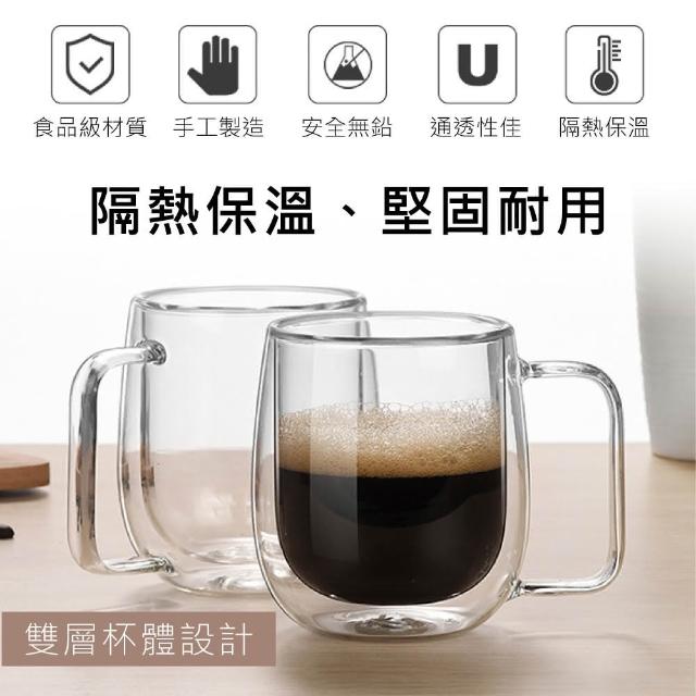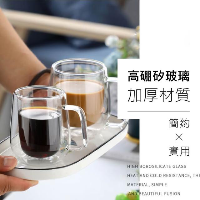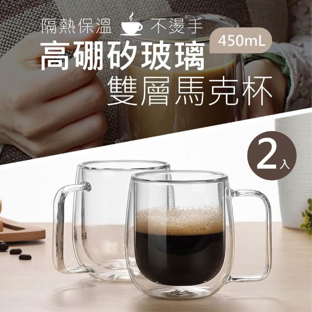 新錸家居彩盒2入450ml雙層玻璃杯 耐冷熱不易裂高硼矽隔熱保溫把手柄馬克杯(咖啡茶威士忌酒防燙抗酸鹼)
