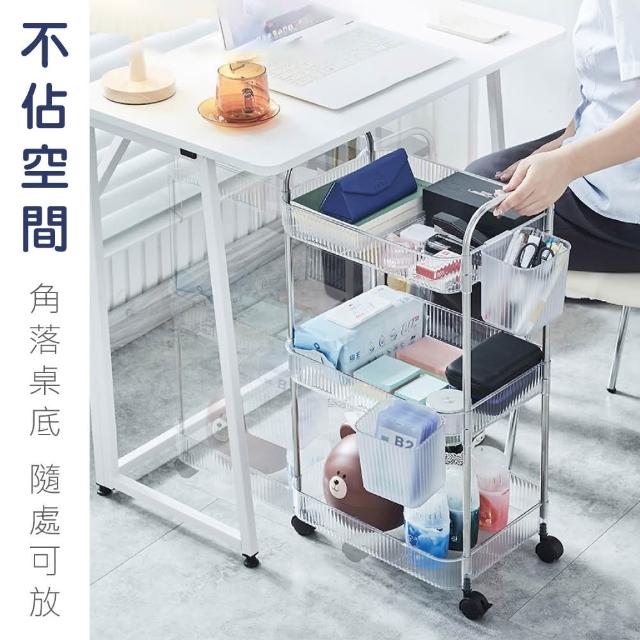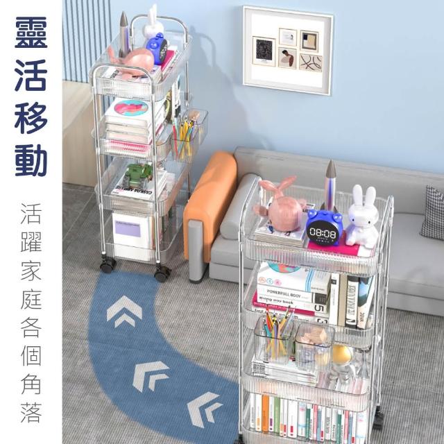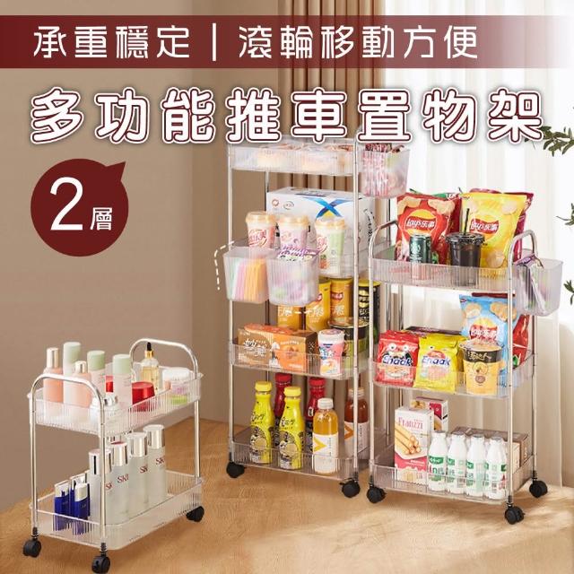 新錸家居PET透明置物架推車 夾縫隙收納架二層(萬向剎車靜音滾輪 高承重大容量籃櫃子層架 行動餐車)